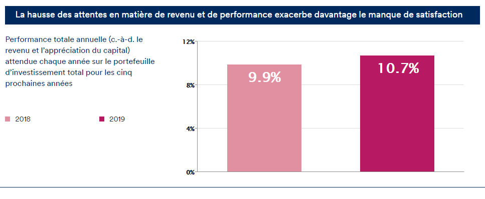 En moyenne, les personnes interrogées ont déclaré tabler sur une performance annuelle moyenne de 10,7% dans les 5 ans à venir, une hausse sensible par rapport aux attentes de l’an dernier, qui étaient de 9,9% en moyenne.