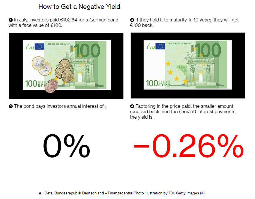 L’infographie du lundi illustrait un excellent article de John Ainger sur les 13000 milliards de dollars d’obligations à taux négatifs accessible ici en anglais sur le site de Bloomberg.
